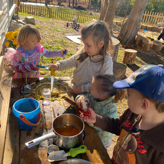 We were pleasantly surprised with a very sunny start to November, and so we spent Thursday and Friday almost entirely outside! We ate our snacks and lunches out on the picnic blanket, read books outside, sang songs outside, created art and enjoyed poetry outside.