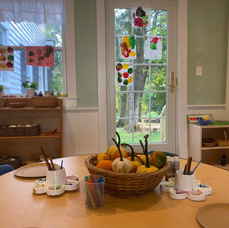 This week, we also spent some more time observing the changes around us at the start of the fall season. The group took their first nature walk through the village, stopping at the Swift River Trail and Remick Farm as we worked our way through an autumn scavenger hunt. We collected leaves of all colors, found all types of seeds and seed pods, picked up acorns, pinecones, and so much more! We even got to spend some time observing a monarch caterpillar we discovered on our walk. Although we missed our music class this week, we enjoyed spending some time with Mr. Chris when he joined us for our nature walk. :)