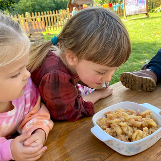 After reading all about the old woman's long and winding journey to acquire some apples, we were all feeling ready to make an apple treat ourselves, and the class had such fun making applesauce! They were taught to carefully prepare the apples using an old fashioned apple peeler/ corer, and then we added lots of cinnamon and a bit of maple syrup before letting it cook. They loved smelling and tasting what they had created, and are eager to do some cooking or baking again soon!