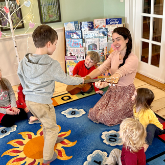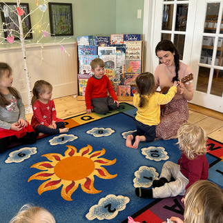 Another highlight of the past couple of weeks with this group has been our music classes with Mr. Chris! The class has been enjoying learning to keep time on various percussion instruments such as bongos, djembe, triangles, egg shakers, etc. while we sing and Mr. Chris plays piano. We have also been incorporating more and more music into our daily routines with this class, and this week they especially loved a new song/ game in which certain children are invited to dance in the middle of the circle based on the letters in their names, colors they’re wearing etc.