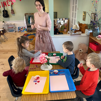 Practicing manners and etiquette at our “Valentine Banquet”. The class is doing such a lovely job building the habit of using kind words such as “please,” “thank you,” and excuse me”. :)