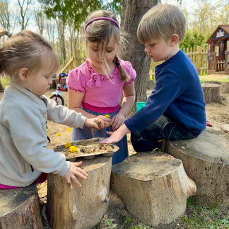 We spent the day in the sunshine creating dandelion crowns, enjoying our lunch outdoors, noticing shapes in the clouds, digging for worms and playing some of our favorite collaborative games. What a joy it has been to welcome so much sunshine and color back into our days!