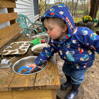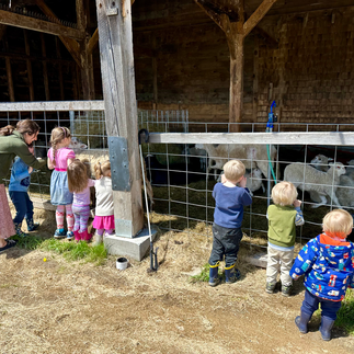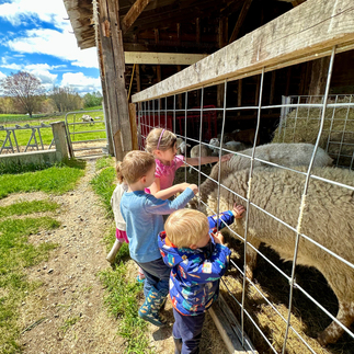 On Friday, the sun finally came out and we enjoyed it to the fullest by getting right outdoors! We played “Color I Spy” as we explored our natural surroundings in our yard space, and then took our explorations across the street to the farm! It was so great to return to the farm after many months of waiting for it to reopen, and the children were delighted to see some of the baby animals that have recently been born.