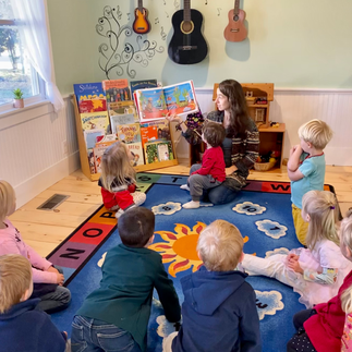 After much anticipation and excitement, our classroom was buzzing with energy all day on Halloween Monday! The children spent the morning making "witches brew" by following recipe cards calling for various numbers of bats, fangs, bones and pumpkins. They were also mesmerized by creating pumpkin patches in the colorful sensory bins, as they practiced their fine motor skills by picking up pumpkins, spiders and more with their tongs. After a final practice for the evening's story time event, our morning meeting finished up with a secret message found at the end of our Room On the Broom book! The message led the children on a scavenger hunt throughout the classroom and out into the play yard. The final clue helped them to find the ghosts (white balloons) that had been hiding behind the bookshelf! Off they ran to play ghostbuster games out back in the beautiful and sunny weather! Afterwards we made a pumpkin volcano! The mud kitchen was set up as a "potion station", and the children were so excited to mix up special magic potions using the orange and purple colored water from the volcano, sand, flower petals, stones, and anything else that would do the trick! We finished out the day with some final preparations for the evening's event, with some of the students decorating a large spooky, spider-filled banner to display for the families!