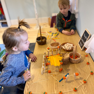 Our first family event (ever!) was so much fun! We had a wonderful turnout, with many family members dressed in costume, along with their kids! It was the first time that we had both our Monday/Tuesday/Wednesday and our Thursday/Friday groups together, and they didn't miss a beat - all reciting poetry, singing, and story-telling together. We had all rehearsed lines and movements for our reading of Room on the Broom, and it was so nice to be able to surprise families with all of the clever props the children had made - from a "horrible beast" to a "truly magnificent broom", a Halloween-night backdrop for the performance, as well as a pumpkin piñata and a giant, hand-drawn and painted beanbag toss game! We all enjoyed some food and fun before heading out to trick-or-treat!
